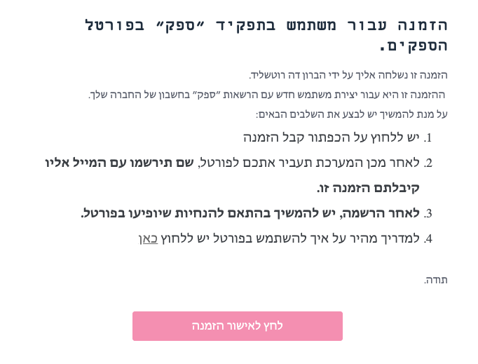 לאחר הזמנת הפרטים, יש ללחוץ על כפתור הרישום, לאחר רישום מוצלח את תועבר לדף יצירת ספק